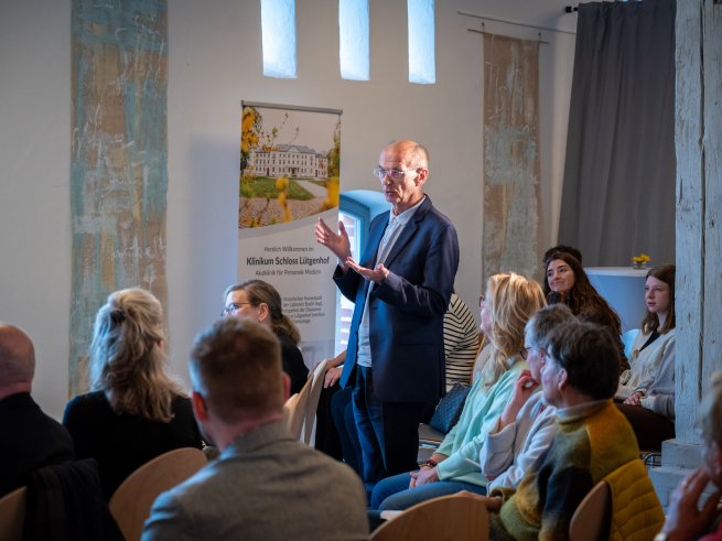 Unter diesem Titel fand am 3. und 4. Oktober 2025 das erste Symposium des Klinikums Schloss Lütgenhof im Alten Speicher in Dassow statt – zwei Tage zwischen Denken und Erleben, zwischen wissenschaftlicher Präzision und künstlerischer Offenheit. Im Dialog von Philosophie, Wissenschaft und Kunst wurde ausgelotet, was es heute heißt, Mensch zu sein – sichtbar, verletzlich und verbunden.