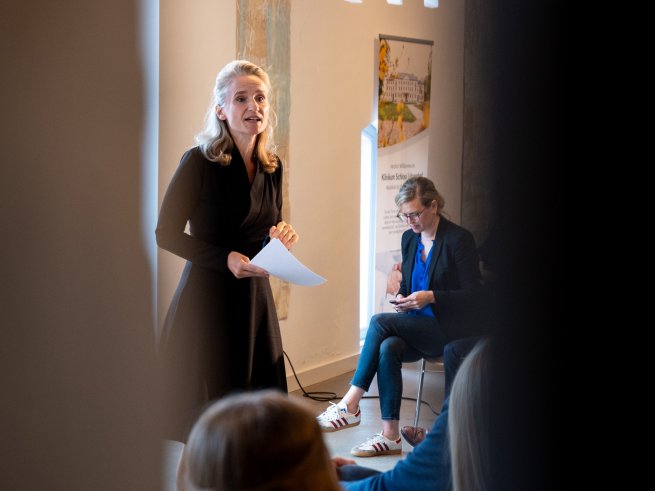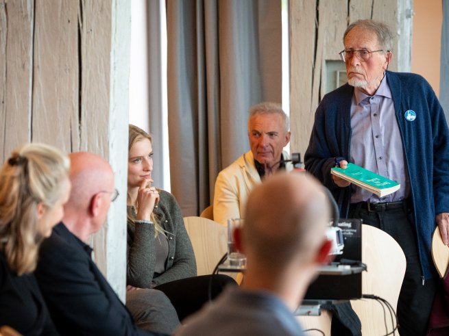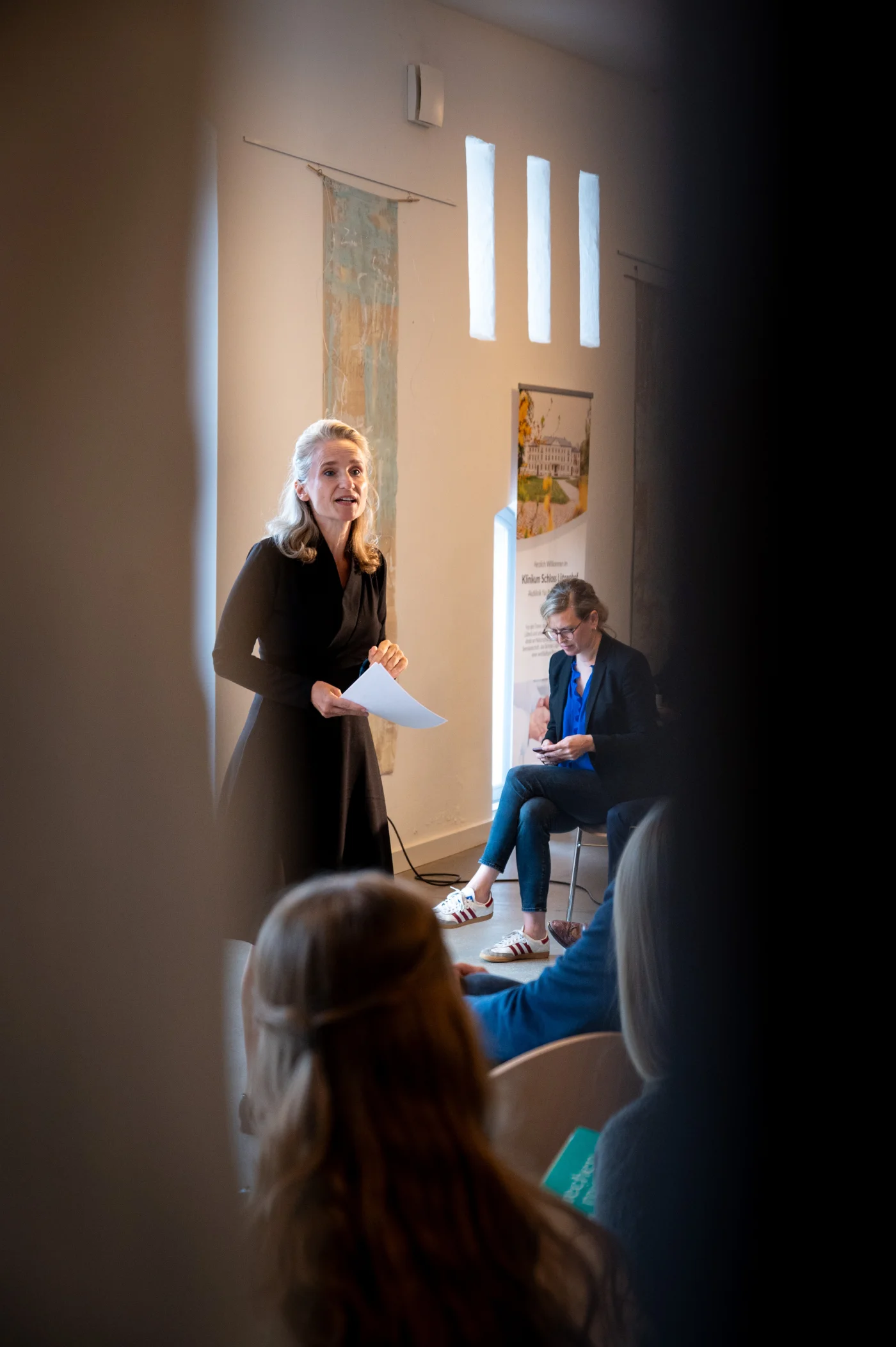 Eine musikalisch-künstlerische Intervention von Juditha Haeberlin an der Geige und Corinna Pregla mit gesprochenen Gedichten schloss den Tag stimmig ab: Klang, Stille und das, was dazwischen liegt. Das gemeinsame Abendessen im Schlossgut Groß Schwansee bot dann den Raum zum Nachhallen – leise und laute Gespräche, lautes und leises Lachen, ein bisschen Weinen vielleicht. Mit und ohne Maske.
