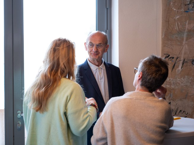 Die Mittagspause wurde zunächst für eine Begehung der Klinik genutzt und brachte dank unseres Küchen- und Serviceteams um Florian Dibbern und Laura Fadel kulinarische Höhepunkte und eine wohlig-angeregte Atmosphäre für weiteren Austausch. Die zweite Hälfte eröffnete Prof. Dr. Gerhard Danzer mit seinem Vortrag Wie wäre es ein Mensch zu sein? über das echte Sich-Zeigen, über Martin Bubers Gedanken zum dialogischen Prinzip – und über die Sehnsucht und vielleicht auch die Notwendigkeit des Menschen, sich selbst als Gegenüber ohne Maske zuzumuten.