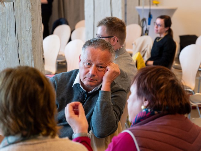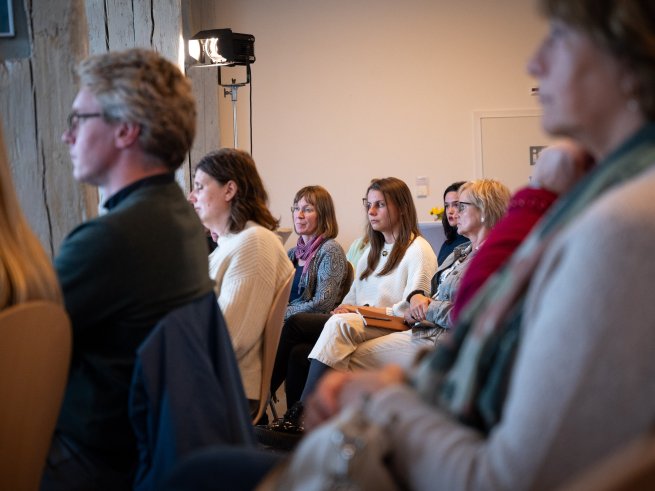 In den anschließenden Werkstattgesprächen entfalteten sich vielstimmige Perspektiven: Dr. Helmut Harr beleuchtete die Begriffsgeschichte von Person und Persona, Prof. Dr. Wolfram Schüffel sprach frei und spontan – unter anderem im Dialog mit Menschen aus Dassow, die er am Vorabend an der Tankstelle für das Symposium gewinnen konnte. Dr. Corinna Pregla sprach in ihrem Vortrag PerSonare über die Psychologie der Stimme, der Sprache, nicht zuletzt auch der Jugendsprache, in der Begriffe wie „Aura“ oder „Alles gut“ eine neue Resonanz entfalten.